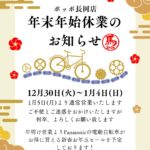 年末年始の営業と年始セールについてのお知らせです。 今年度1… 続きを読む: 年末年始の営業のお知らせと年始セール - お盆休みの営業のお知らせ