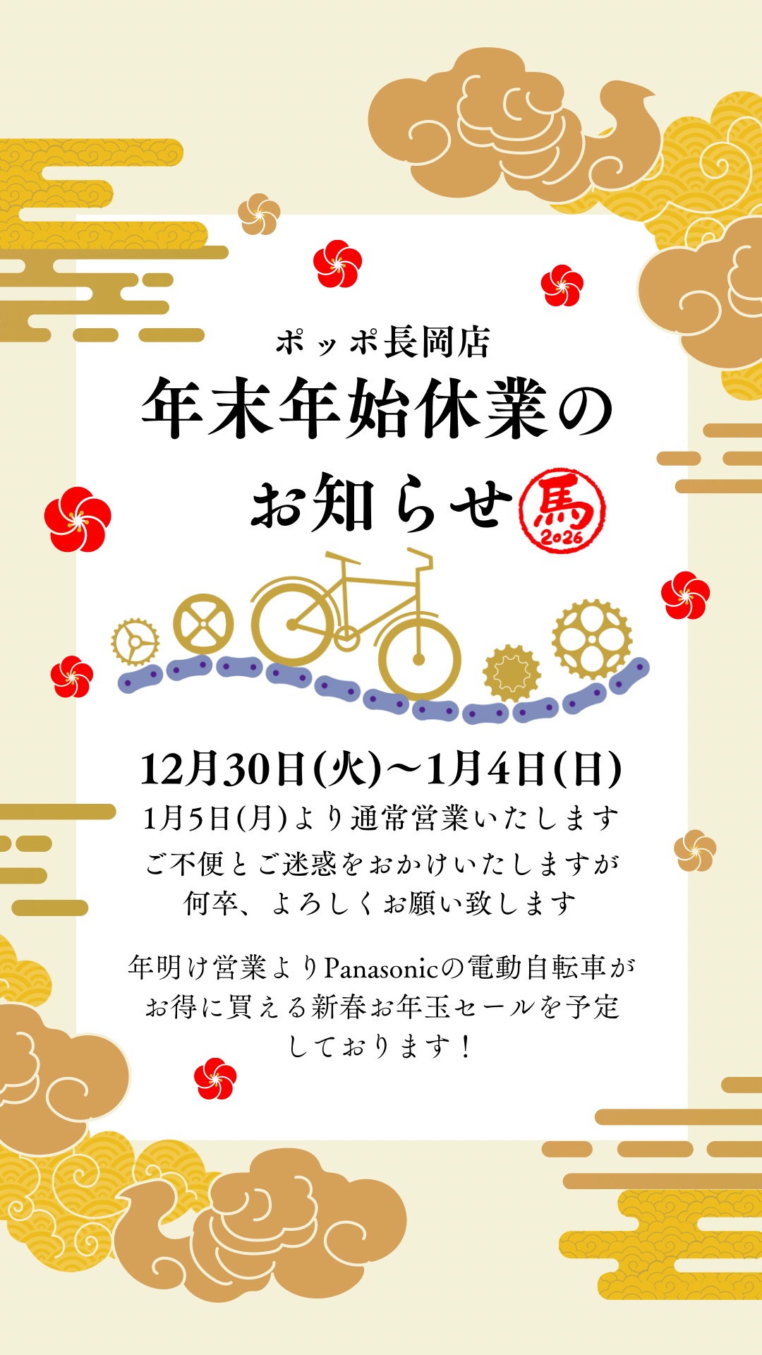 年始はポッポ長岡店でお得に電動自転車購入してくださいね!!