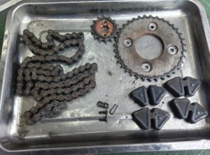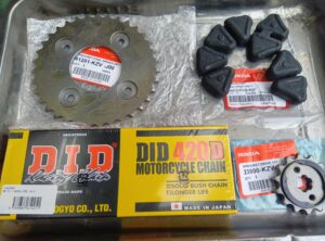 チェーン、前後のスプロケット、ハブ内部のダンパー一式を交換します。