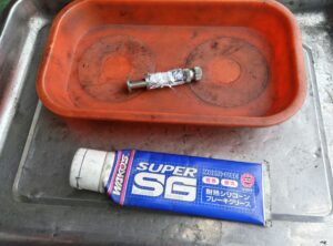 リヤブレーキカムの動きも悪いので、耐熱のシリコングリスを、薄っすらぬっておきました。