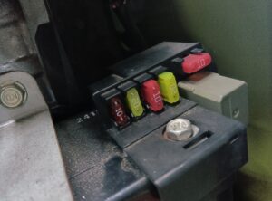 ヒューズは、車両に搭載されていたスペアヒューズにて交換し、新しいヒューズを、スペアとして、搭載しました。